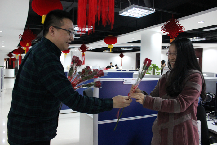 公司在3月6日开展鲜花送祝福活动,由人力资源部肖经理代表珠海总部、分公司总经理代表各分公司向公司全体女同仁每人送上一束鲜花,表达对女同仁节日的祝福。