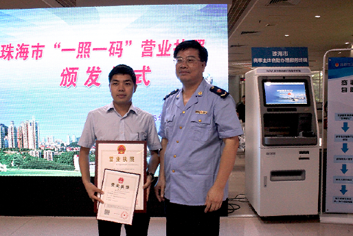 8月31日上午,珠海市、斗门区工商局举行“一照一码”营业执照首发仪式,市、区政府及工商局相关负责人出席首发仪式,并为首批办理商事登记的3家企业发放新版营业执照。公司自主研发的新产品“AGM多功能自助行政服务终端”亮相首发仪式现场,受到各级领导和企业代表的赞扬。